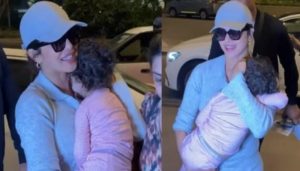 Mumbai, 19th February 2025: Actress Priyanka Chopra was seen at the airport on Wednesday morning, holding her sleeping daughter, Malti...