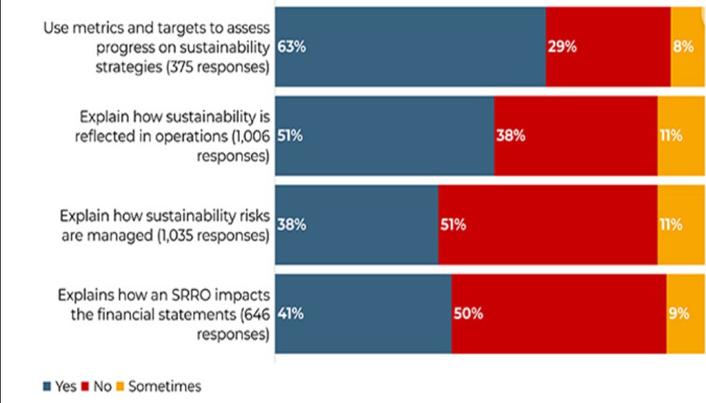 Unfortunately, connectivity for sustainability-related matters is not common practice among organisations in their corporate reporting activities, including the publication of annual reports. Frequently the connections are not communicated – risking poor quality decision-making by all stakeholders. A survey of over 1,000 finance professionals from around the world (see notes to editors) revealed that only half (49%) of their organisations explain how sustainability is reflected in their operations and only 38% explain how they manage sustainability risks.